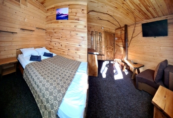 Alpine Eco Chalet & Wellness пропонує номери з авторським оформленням для комфортабельного відпочинку в Карпатах. Вся будова зроблена з екологічно чистих матеріалів на виконання міжнародної програми екологізації місць тимчасового розміщення, що в максимальній мірі сприяє оздоровленню і відпочинку гостей. Всі номери світлі з великими балконами з яких відкривається приголомшливий вид на Карпати, меблями з дуба і плетеної лози, оснащені сорока трьох дюймовими ЖК телевізорами і WI-FI. Підтримка чистоти і порядку - незмінне правило сервісу.