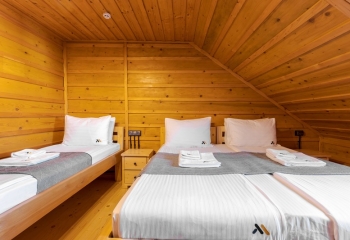На території комплексу розташовані: 2 готелі на 34 номери наступних категорій: 13-двомісних стандартів, 10-двомісних стандартів покращених, 3-тримісних стандарти. 2-тримісні стандарти покращені, 3 номера люкс, 1-сімейний та 1-сімейний покращений та 2 котеджі в кожному з яких по дві кімнати.