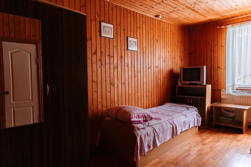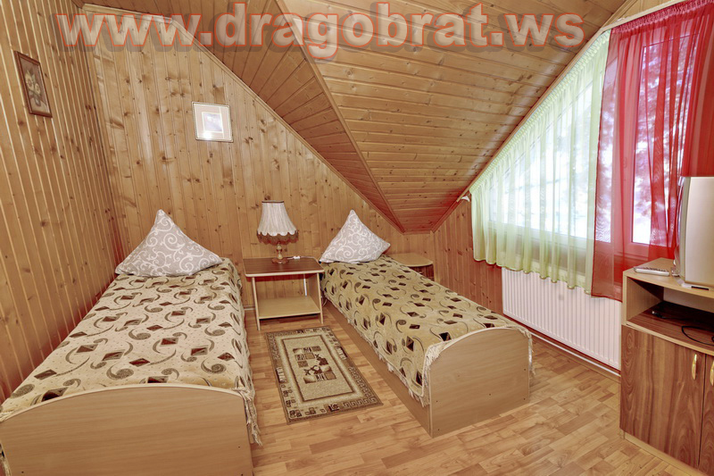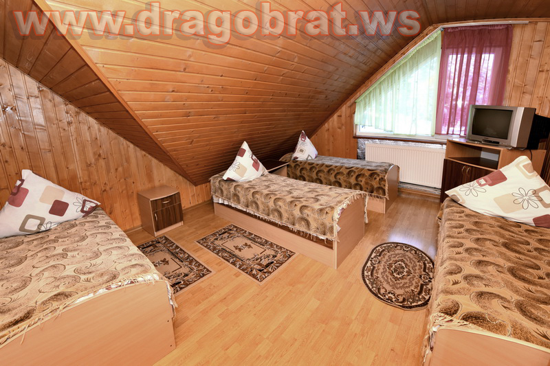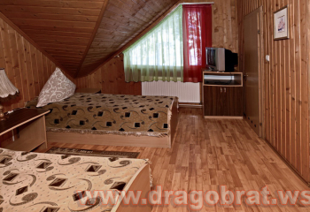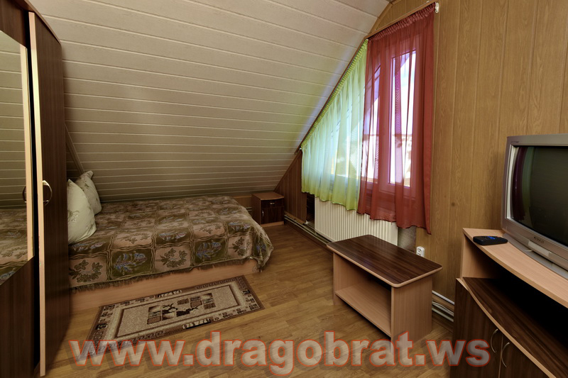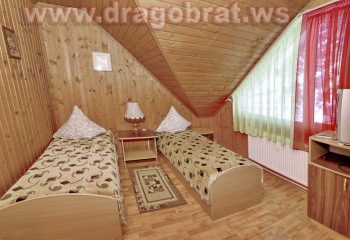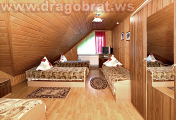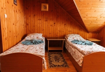 "2-місний мансард" - 2 шт. - однокімнатний, 2-х місний номер, загальна площа - 10-12м.кв., одне двоспальне ліжко, супутникове ТБ, санвузол.