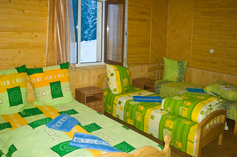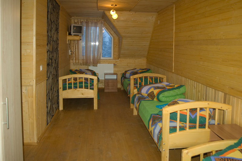 однокімнатний трьохмісний номер (16 кв. м), три односпальних ліжка, супутникове ТБ, санвузол (душова, унітаз, умивальник)