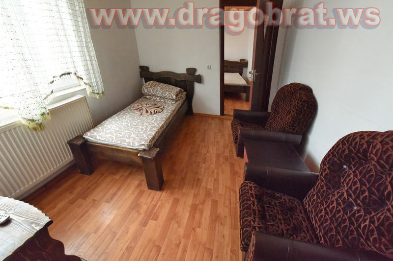 двокімнатний двомісний номер (32 кв. м), двоспальне ліжко, супутникове ТБ, м'яка частина, санвузол (душова, унітаз, умивальник)