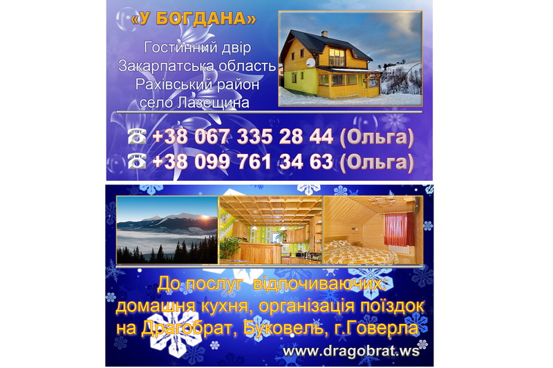 Гостинний двір "У БОГДАНА" знаходиться в селі Лазещина у підніжжі гір Говерла та Петрос, в 10км. від курорта Драгобрат та 10км. ТК Буковель.