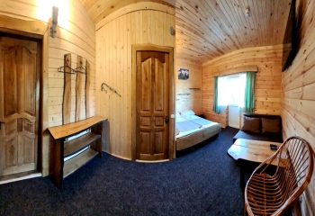 Покращений двомісний номер з балконом (однокімнатний, 2-місний номер, загальна площа - 24 м. кв.) - 2 односпальні ліжка або двоспальне ліжко, авторські меблі та дизайн, супутникове ТБ, Wi Fi, панорамний балкон, санвузол (душова кабіна, унітаз, умивальник, кількість рушників – 2 на особу).