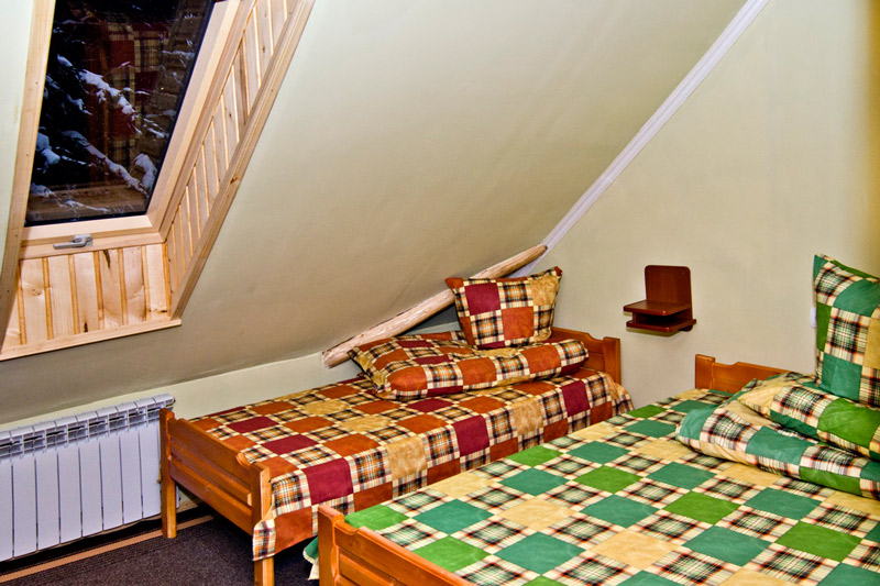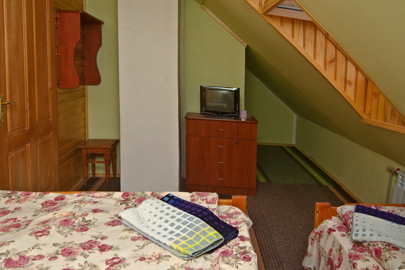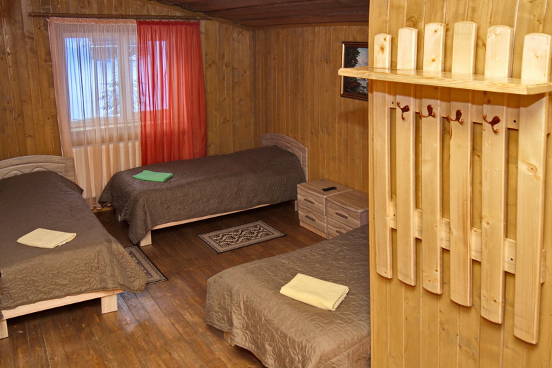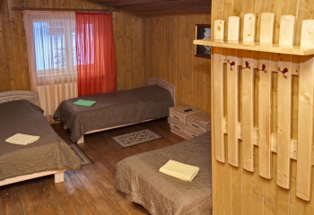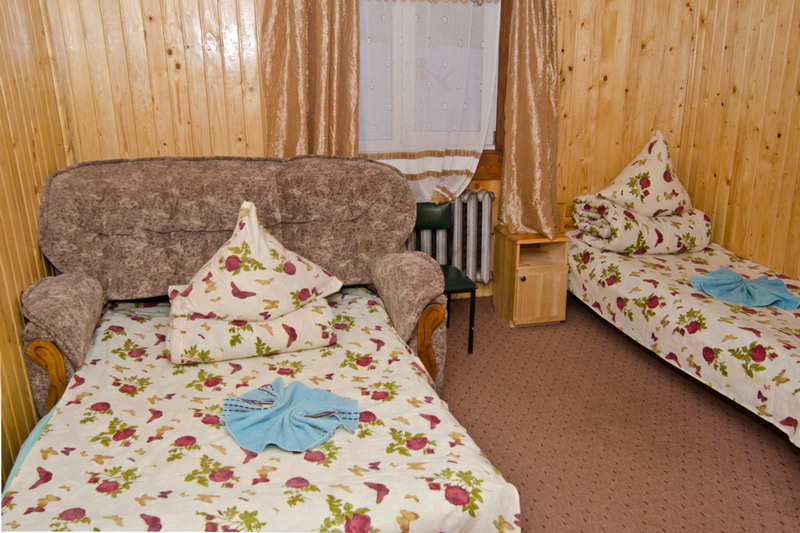 "3-місний" : одна кімната (12 кв.м), три односпальних ліжка, супутникове ТБ, санвузол (душова, унітаз, умивальник)