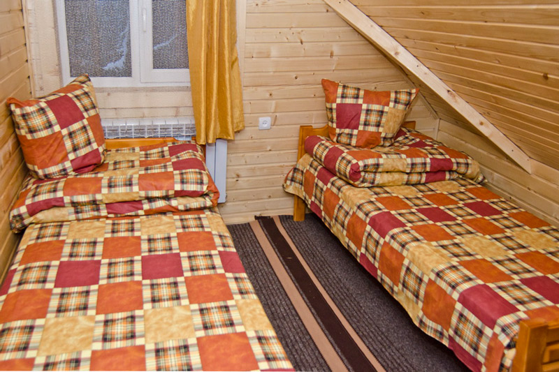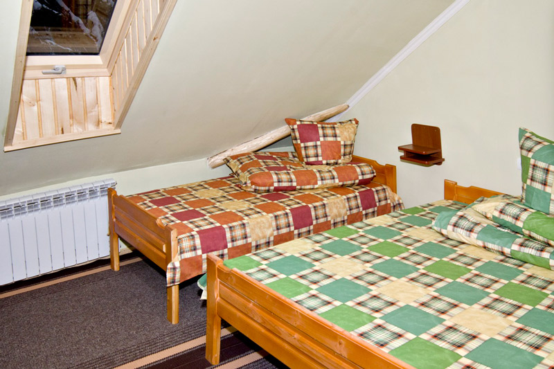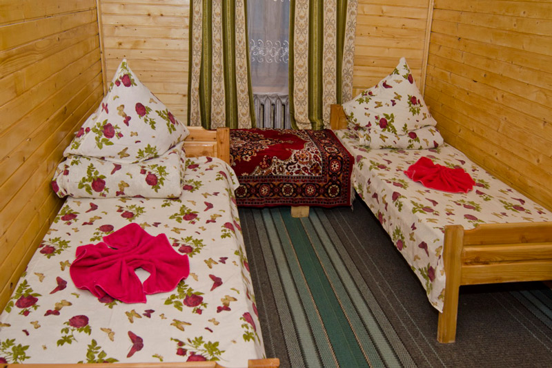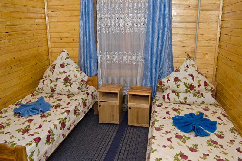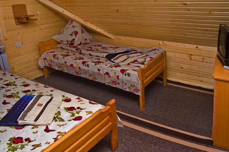 "2-місний" : одна комната (11 кв.м), два односпальних ліжка, супутникове ТБ, санвузол (душова, унітаз, умивальник)