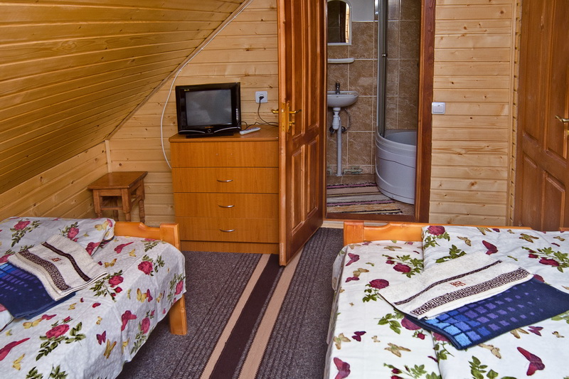 "Стандартний": двомісний номер (15 кв.м), два односпальних ліжка, супутникове ТБ, санвузол (душова, унітаз, умивальник)