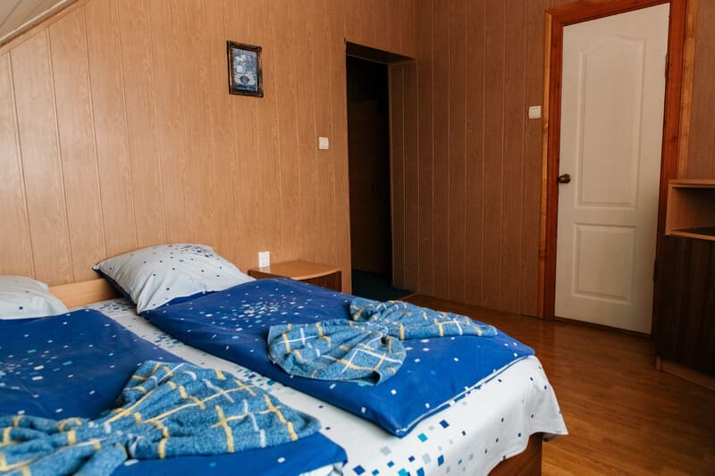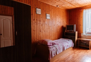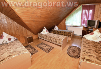 "Сімейний " - 2 шт. - однокімнатний, 4-місний номер, загальна площа – 20 м.кв., 2 односпальних ліжка, двухспальне ліжко, супутникове ТБ, санвузол.
