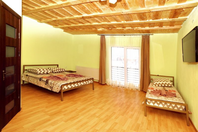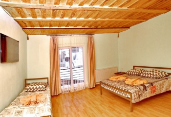 чотири просторих номери з балконами, санвузлами; великий обідній зал, де можна організовувати і проводити святкування, торжества; супутникове ТБ, WI-FI.