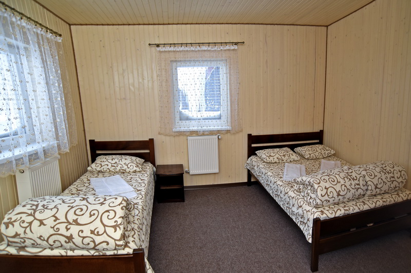 "2-кімнатний 4-місний" - 4 шт.: двохкімнатний читирьохмісний номер, два односпальних ліжка плюс двоспальне. супутникове ТБ, санвузол (душова, унітаз, умивальник)